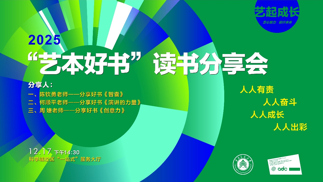12月17日下午,艺术设计学院第三期“艺本好书”读书分享会在科学城校区德园“一站式”服务大厅温情启幕。本次活动以“共话阅读力量,共探成长智慧”为主题,邀请学院正处级组织员兼纪委书记陈钦勇、环境设计系教师何顺平、视觉传达设计系教师周婕担任分享嘉宾,学院党委书记朱静,学工办主任王辉与众多学子齐聚一堂,共赴这场书香之约。分享会由学院党委副书记黄亚凝主持。