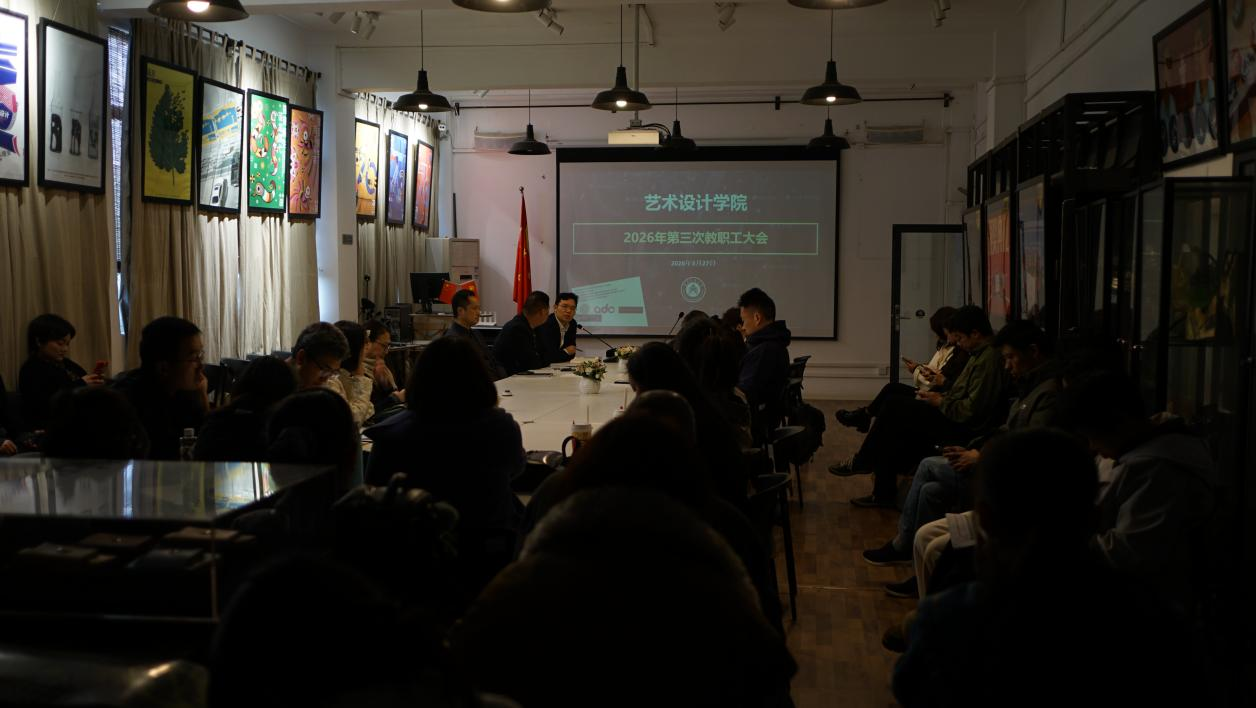 2026年3月27日下午,艺术设计学院2026年第三次教职工大会在南岸校区第一教学楼10312众创空间召开。学院全体教职工参会,会议由李伟湛院长主持。