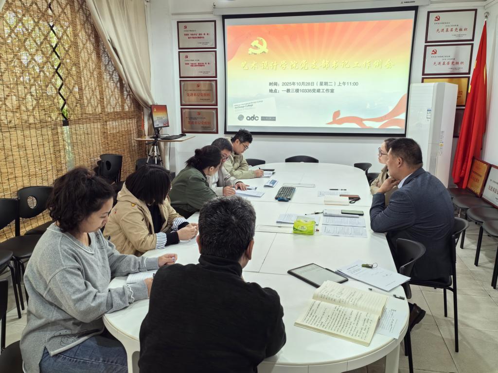2025年10月28日上午,艺术设计学院在南岸校区一教党建工作室10335召开10月党支部书记工作例会,学院党委书记朱静及各党支部委员参会,会议由学院正处级组织员兼纪委书记陈钦勇主持。