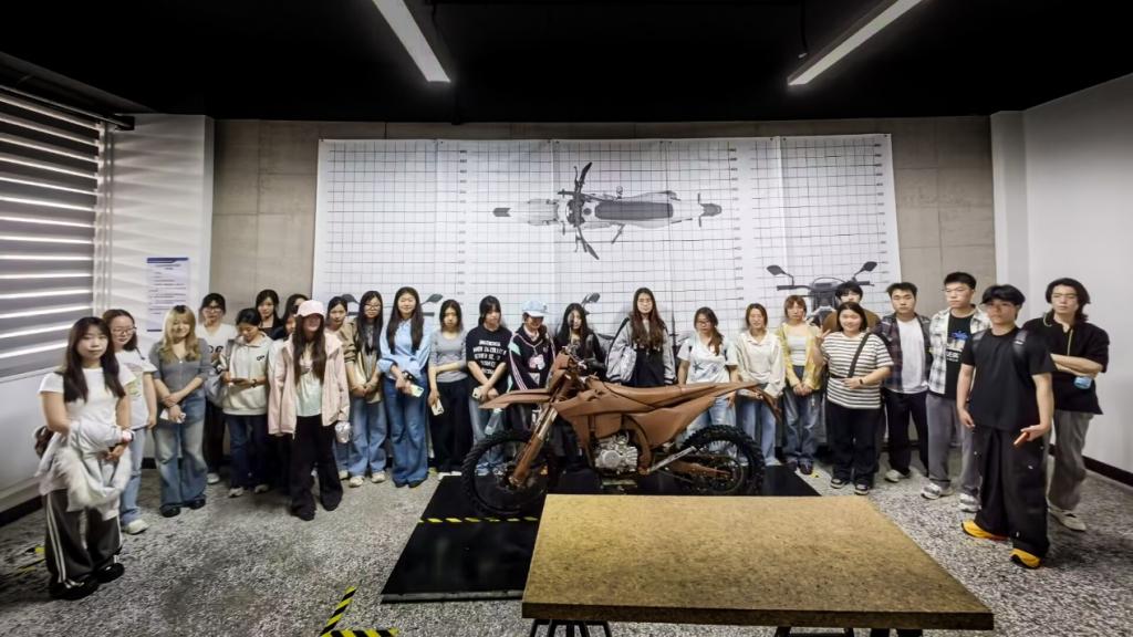 在二楼研发与测试区域,技术部负责人曾永绪详细讲解底盘测功机、发动机测功机、泥模室的工作原理与测试流程,重点介绍整车性能验证、摩托车造型设计及泥模制作评审流程,帮助同学们理解产品设计从创意草图到工程实现的完整链路。