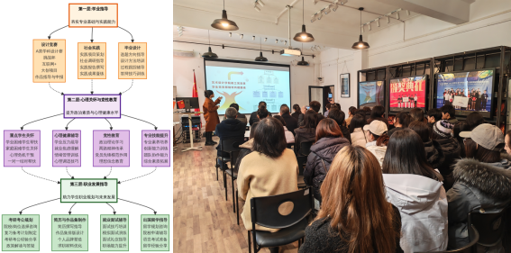 教工党支部书记何顺平介绍支部共建前期开展情况及下一步工作计划。教工支部搭建了三层帮扶树状图,第一层为学业指导层面的帮扶,教师帮助学生夯实专业基础与实践能力,包含指导设计竞赛、社会实践、毕业设计等内容;第二层为心理关怀与党性教育帮扶,通过心理健康辅导、专业技能提升等途径提升学生的政治素质与心理健康水平;第三层为职业发展指导帮扶,助力学生职业规划与未来发展。后续将会继续优化结对共建“树状结构图”,完善动态管理机制,使帮扶活动的影响覆盖面持续扩大,真正带动全院形成积极向上、互助共赢的良好生态。