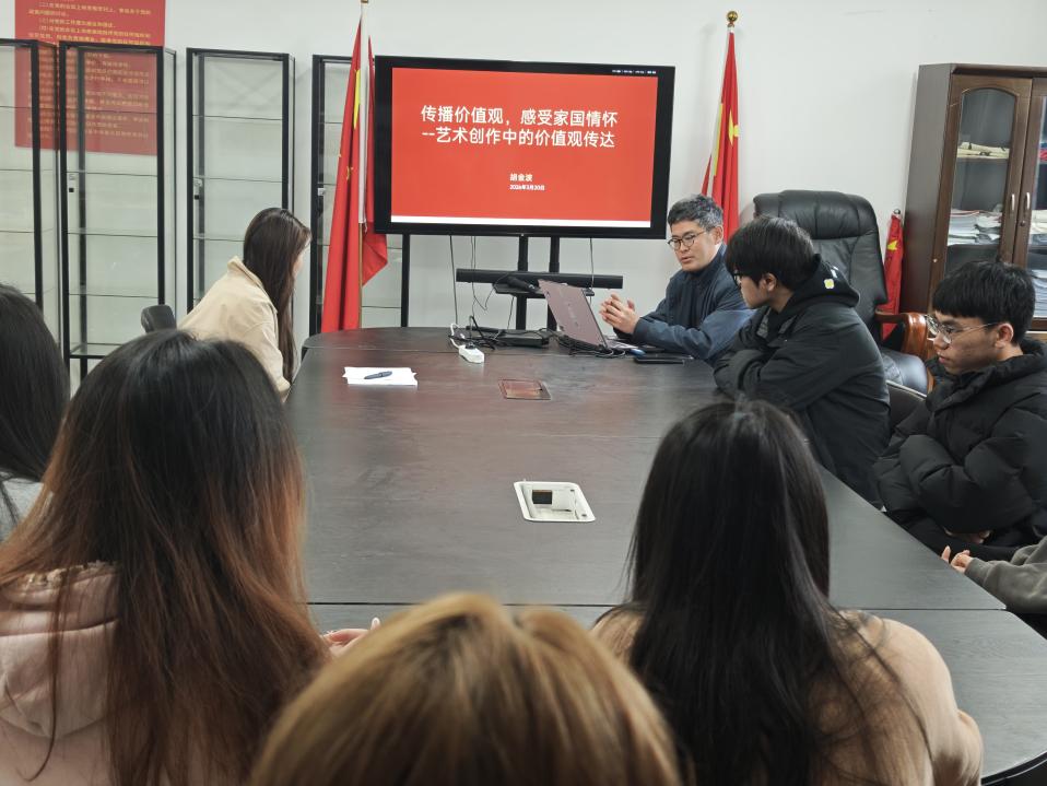 本科生党支部组织委员胡金波老师以“传播价值观念,感受家国情怀——艺术创作中的价值观传达”为题,结合经典艺术作品,阐释艺术表达中蕴含的家国情怀,引导学员以艺术为载体传播正能量。
