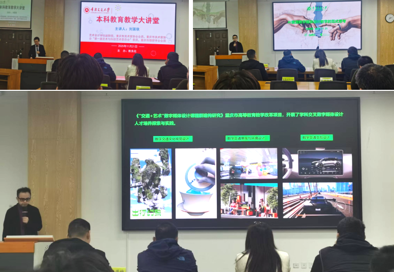 本科教育教学大讲堂在重庆交通大学南岸校区第三教学楼30401教室举行。学校教务处特邀艺术设计学院副教授、重庆市美术家协会会员刘第秋主讲《AI重塑数字媒体设计教学的范式思考》。刘第秋副教授立足教学实践,围绕数字媒体设计教学创新发展展开分享,剖析了专业教学的机遇与挑战,详解教学内容、方法及评价体系的优化路径,并结合具体课堂案例,提供了兼具前瞻性与实操性的教学思路。精彩分享引发在场教师热烈讨论,为教学创新注入新灵感。