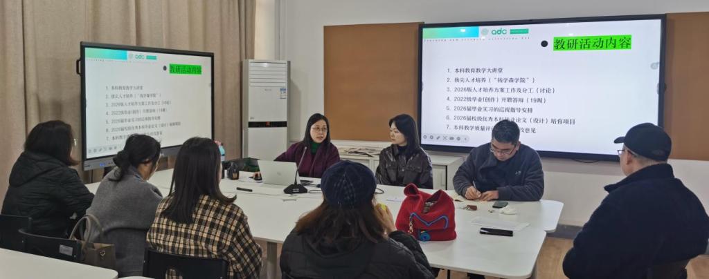 此外,本次教研还重点关注了2026届毕业创作开题答辩、毕业实习巡视指导、校级优秀毕业设计培育等教学环节的组织与实施,并对近期本科教学质量评价结果进行了反馈与总结,为后续教学改进提供了明确方向。