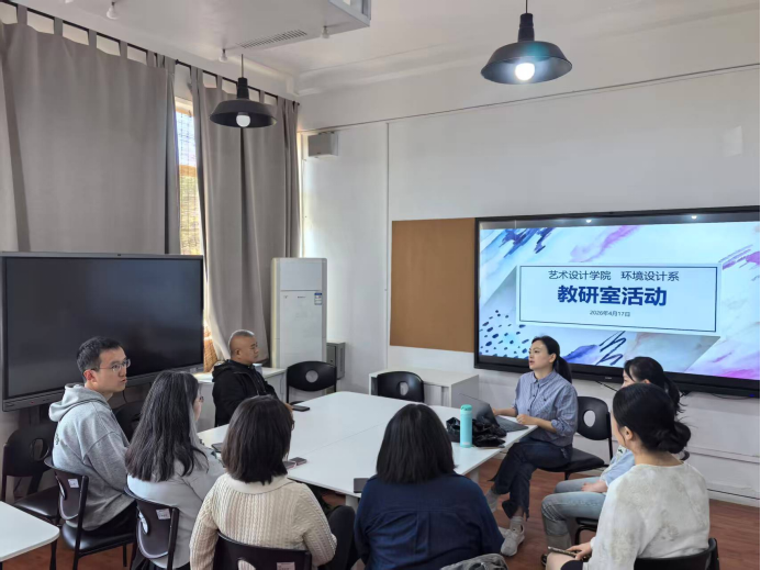 2026年4月17日,艺术设计学院环境设计系在南岸校区一教318召开2026年第二次教研室活动,系主任李丽华、骨干教师林江、全利、邱巧、杨凯凌、吴曦、何顺平、陈子仟、万展志等教师参会,围绕本科教育高质量发展、专业内涵升级及人才培养创新展开深度研讨。